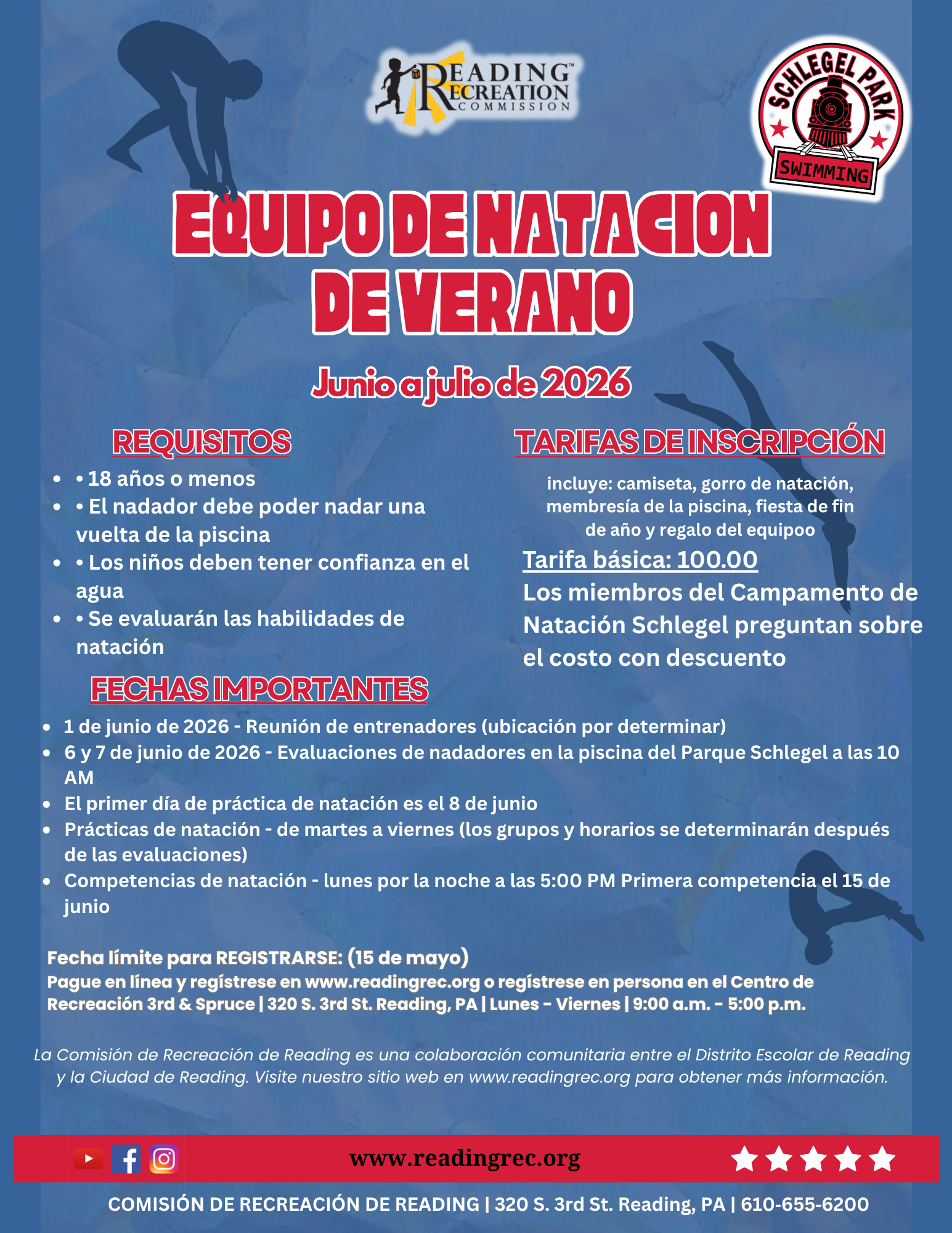 Este equipo es parte de BCSA (Asociación de Natación del Condado de Berks) Edades: 18 años y menores